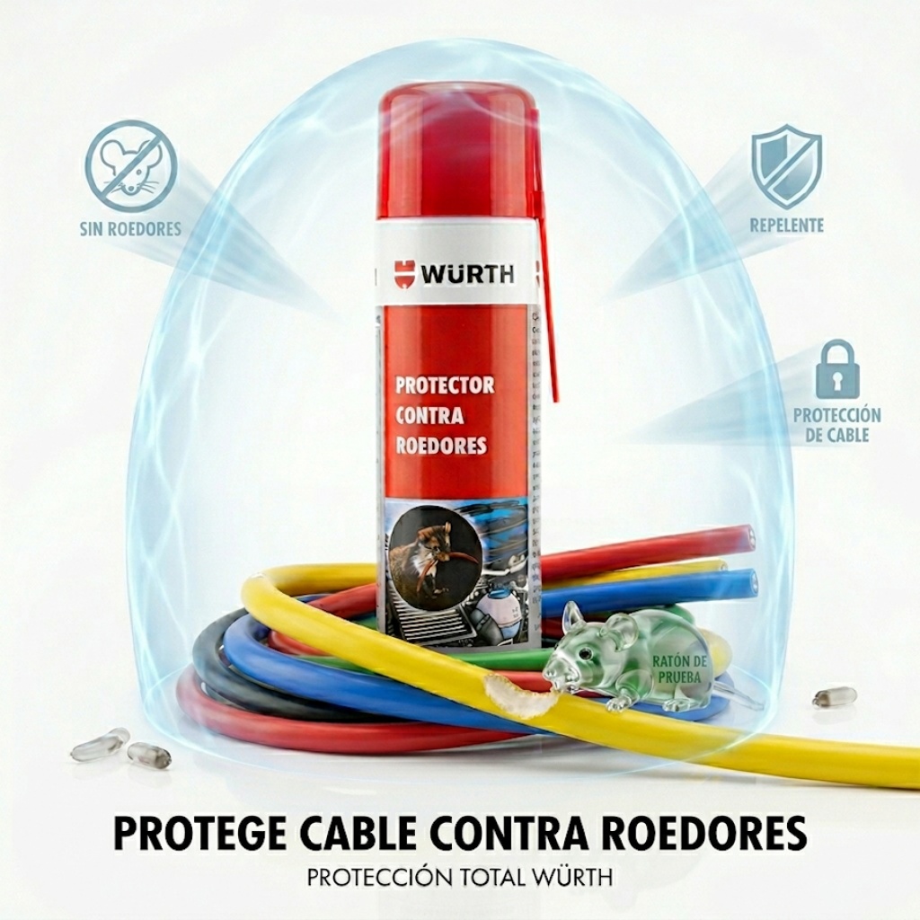 Protegé cables, mangueras, plásticos y componentes eléctricos con el repelente de roedores Wurth.