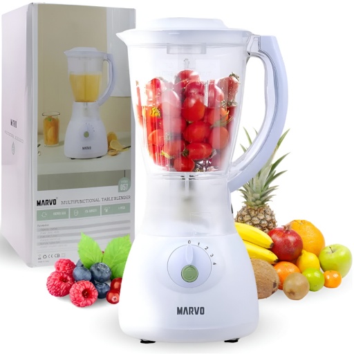 La licuadora Marvo HBR-057 es una opción práctica y eficiente para el uso diario en la cocina. Su motor de cobre ofrece buen rendimiento y durabilidad, permitiendo preparar licuados, jugos y mezclas con facilidad. Cuenta con 4 velocidades más función pulso, brindando mayor control según el tipo de preparación.