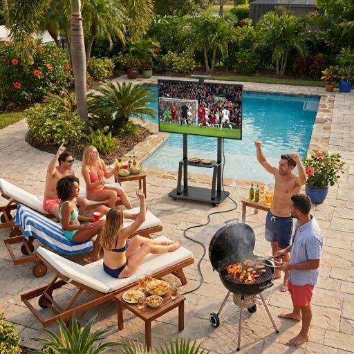 Ideal para colocar la TV en lugares donde no se puede perforar la pared, como cocinas, barbacoas exteriores, oficinas o espacios con paredes de vidrio.