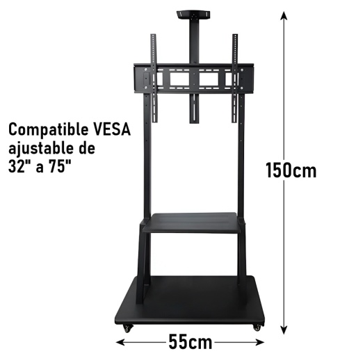Su diseño con ruedas permite mover la televisión fácilmente y ubicarla donde la necesites. Además, cuenta con altura ajustable para lograr una mejor visualización.