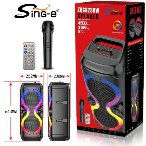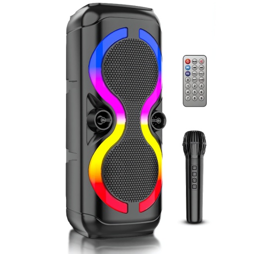 8 pulgadas x 2 y potencia de 20W x 2 ofrecen un audio claro y con buena presencia de graves. Además, incorpora un atractivo frontal con tiras de luces LED RGB que le da un estilo dinámico y llamativo.
