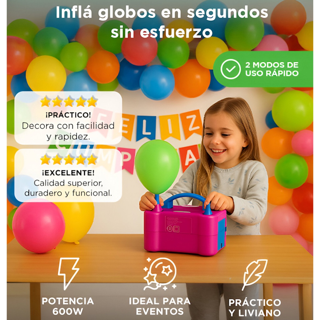INFLADOR DE GLOBOS ELÉCTRICO COMPRESOR 2 INYECTORES PARA INFLAR EN SIMULTANEO 600 WATT