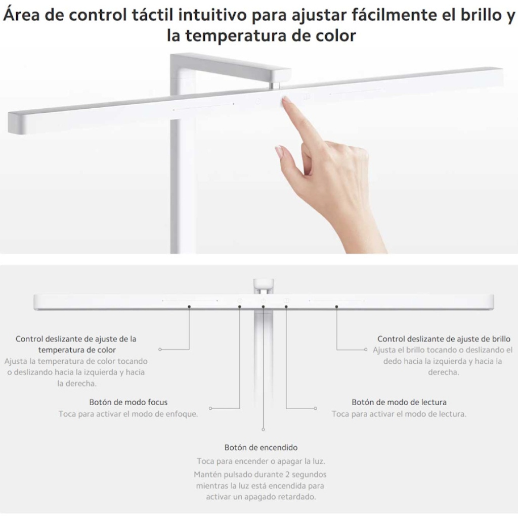 La Xiaomi LED Desk Lamp 2 es una lámpara moderna y elegante, ideal para estudiar, trabajar o leer. Su diseño minimalista y su cabezal largo permiten iluminar toda la superficie del escritorio sin ocupar mucho espacio.