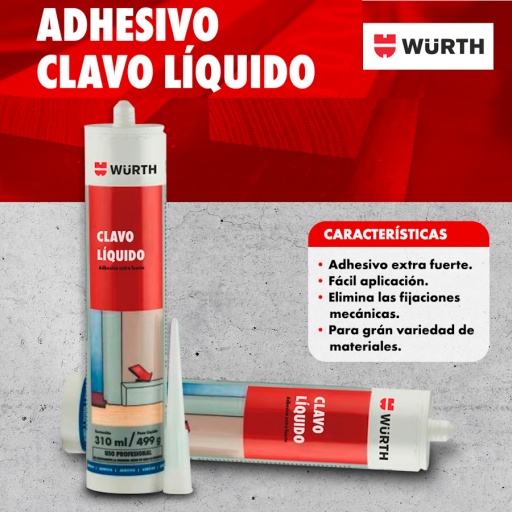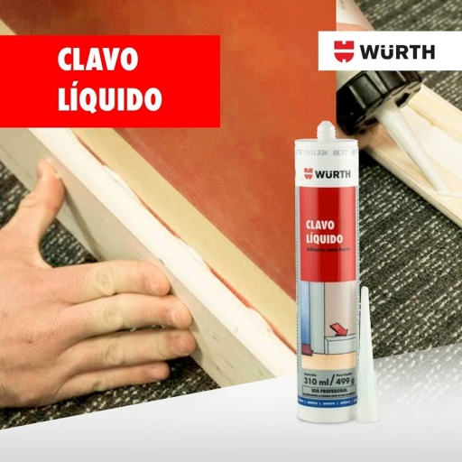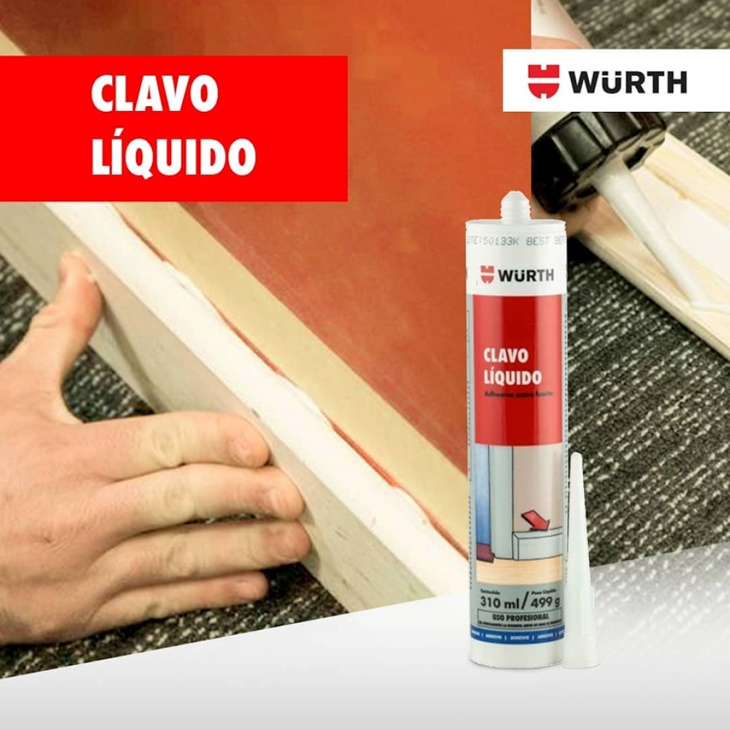 El clavo líquido es un adhesivo y sellador, mono componente de base acrílica de alta adhesividad y fácil aplicación, que repele el agua después de la cura y acepta pintura. Descarta la necesidad de perforar, o clavar, evitando suciedad en la aplicación.