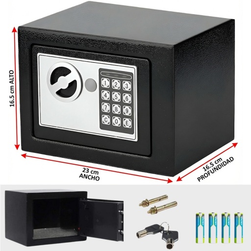 Estas cajas fuertes tienen una combinación digital de acceso que se ingresa mediante un teclado numérico, y también cuentan con una llave para abrir la cerradura en caso de que se olvide la combinación o en caso de que el sistema electrónico falle. La llave es una medida de seguridad adicional que garantiza el acceso a la caja fuerte en situaciones de emergencia.
