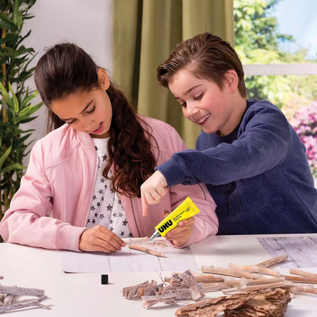 Ideal para el hogar, oficina, maquetería y manualidades, UHU Pegamento Universal es un adhesivo líquido de resina sintética diseñado para realizar uniones rápidas, firmes y transparentes. Su fórmula versátil permite trabajar con una amplia variedad de materiales sin deformarlos, garantizando resultados limpios y profesionales.