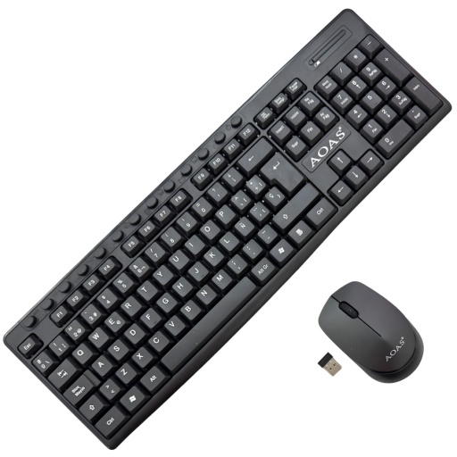 COMBO TECLADO Y MOUSE INALAMBRICO EN ESPAÑOL AOAS CON 1 RECEPTOR WIRELESS 2.4GHZ