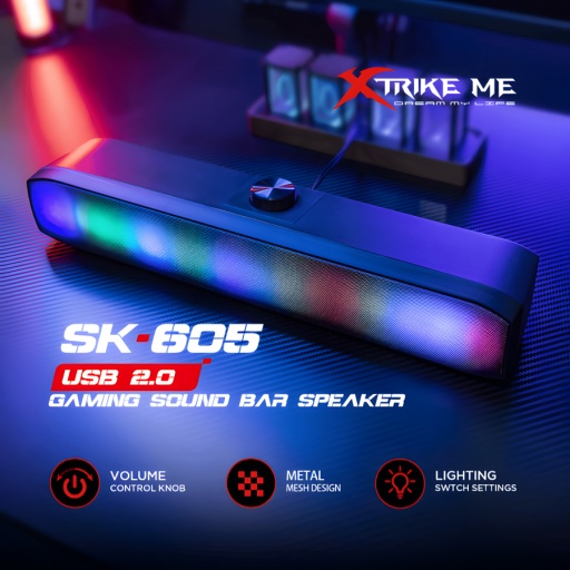 Disfrutá de un sonido claro y envolvente con la barra de sonido Xtrike-Me modelo SK-605, ideal para mejorar la experiencia de audio en tu computadora, notebook o dispositivos compatibles.