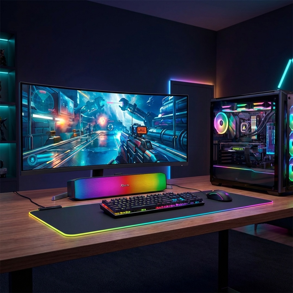 BARRA DE SONIDO SOUND BAR GAMING USB 2.0 JACK 3.5MM PARA PC NOTEBOOK PARLANTE LUZ LED RGB SK-605